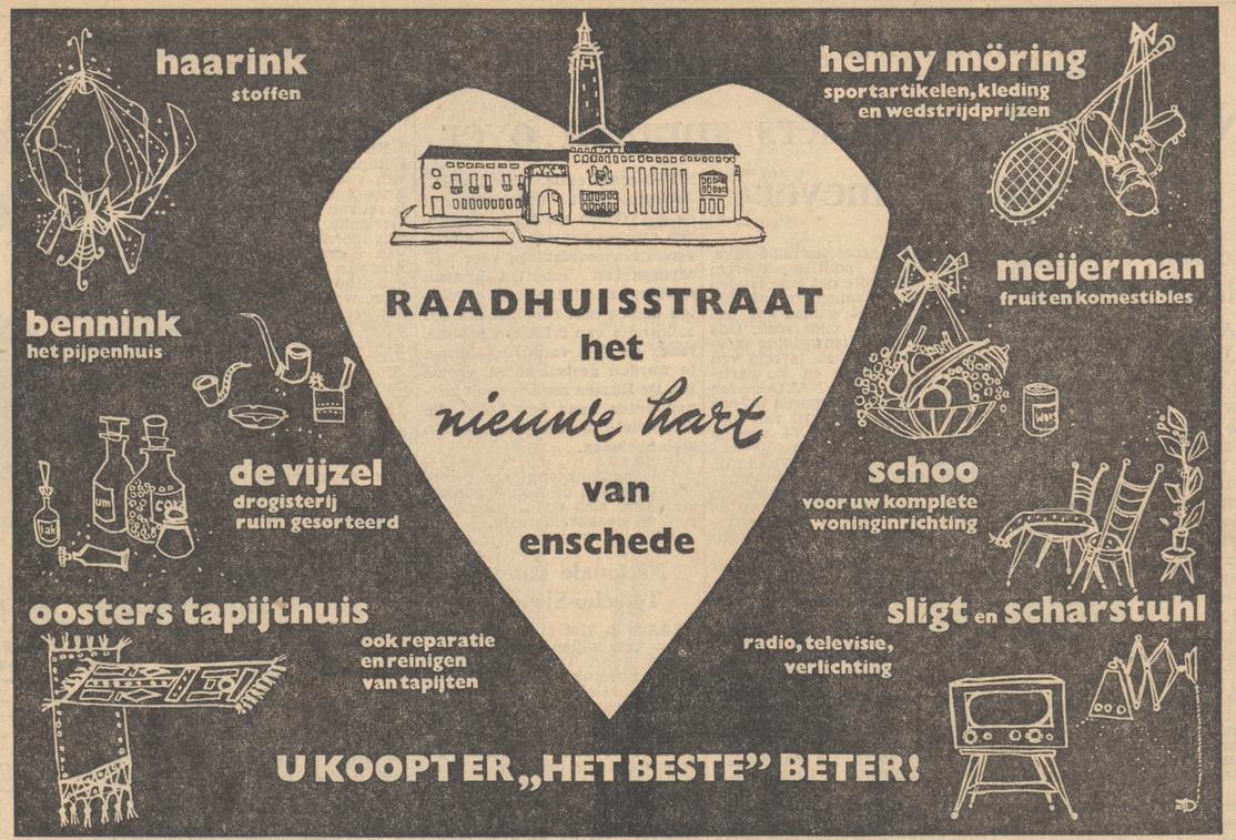 Raadhuisstraat 23 drogisterij de Vijzel van Dhr Scholten advertentie Tubantia 14-11-1957 en 15-11-1969.