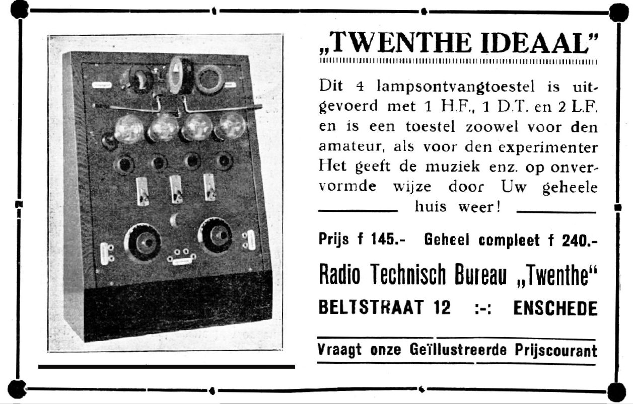 Beltstraat 12 Radio Technisch Bureau Twenthe advertentie 17-7-1924