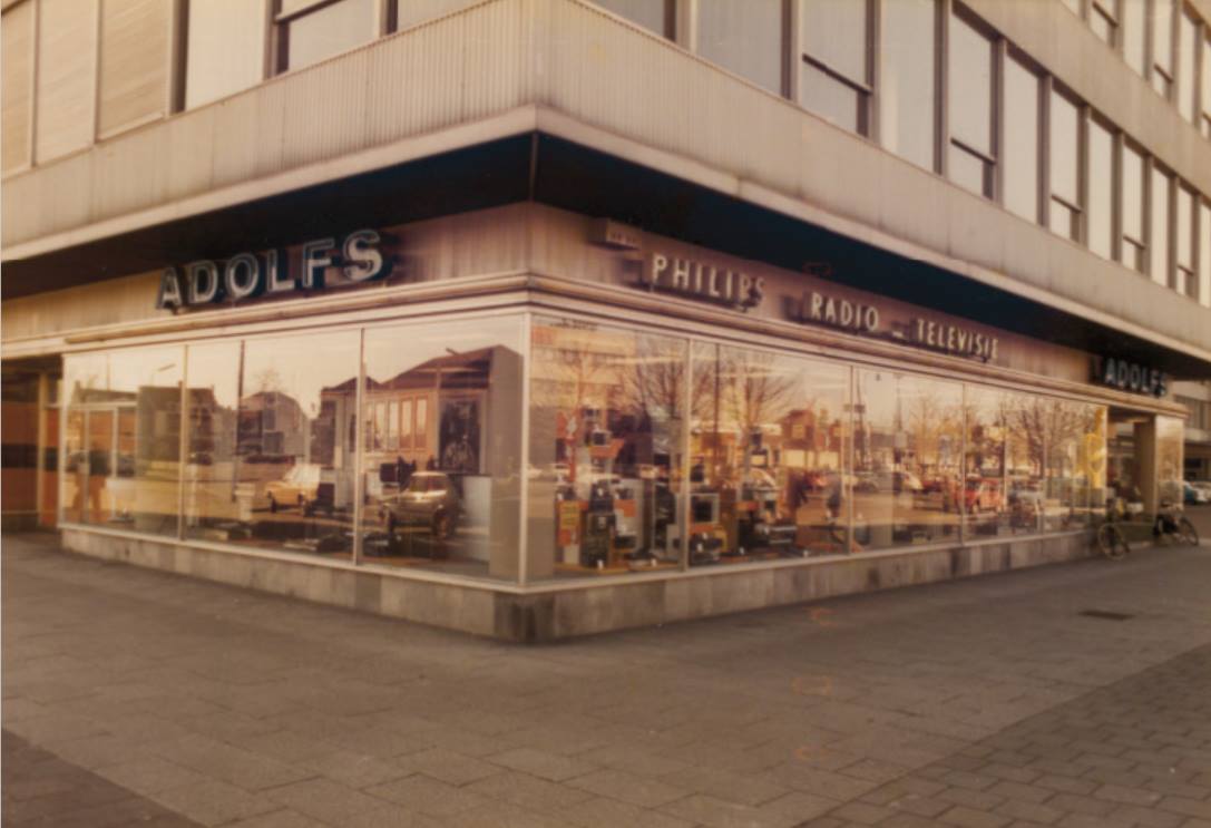 De winkels van Adolfs aan de Floresstraat 18-20, Lipperkerkstraat 31-33 en Haverstraatpassage 64 zijn in 1969 verplaatst naar de Boulevard 1945-136 en 140 volgens onderstaande advertentie uit de Tubantia van 18-9-1968.