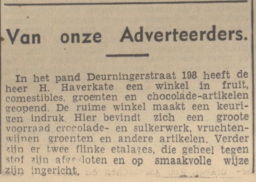 Deurningerstraat 198 H. Haverkate winkel fruit, suikerwerken enz. advertentie Tubantia 5-8-1937 en krantenbericht 7-8-1937