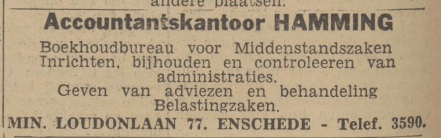 Accountantskantoor Hamming, Min. Loudonlaan 77.