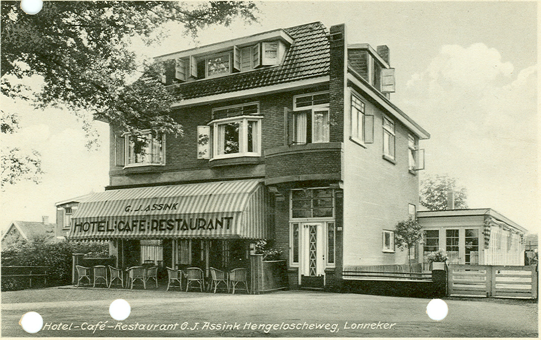 Beschrijving: Zicht op hotel-café-restaurant Assink.