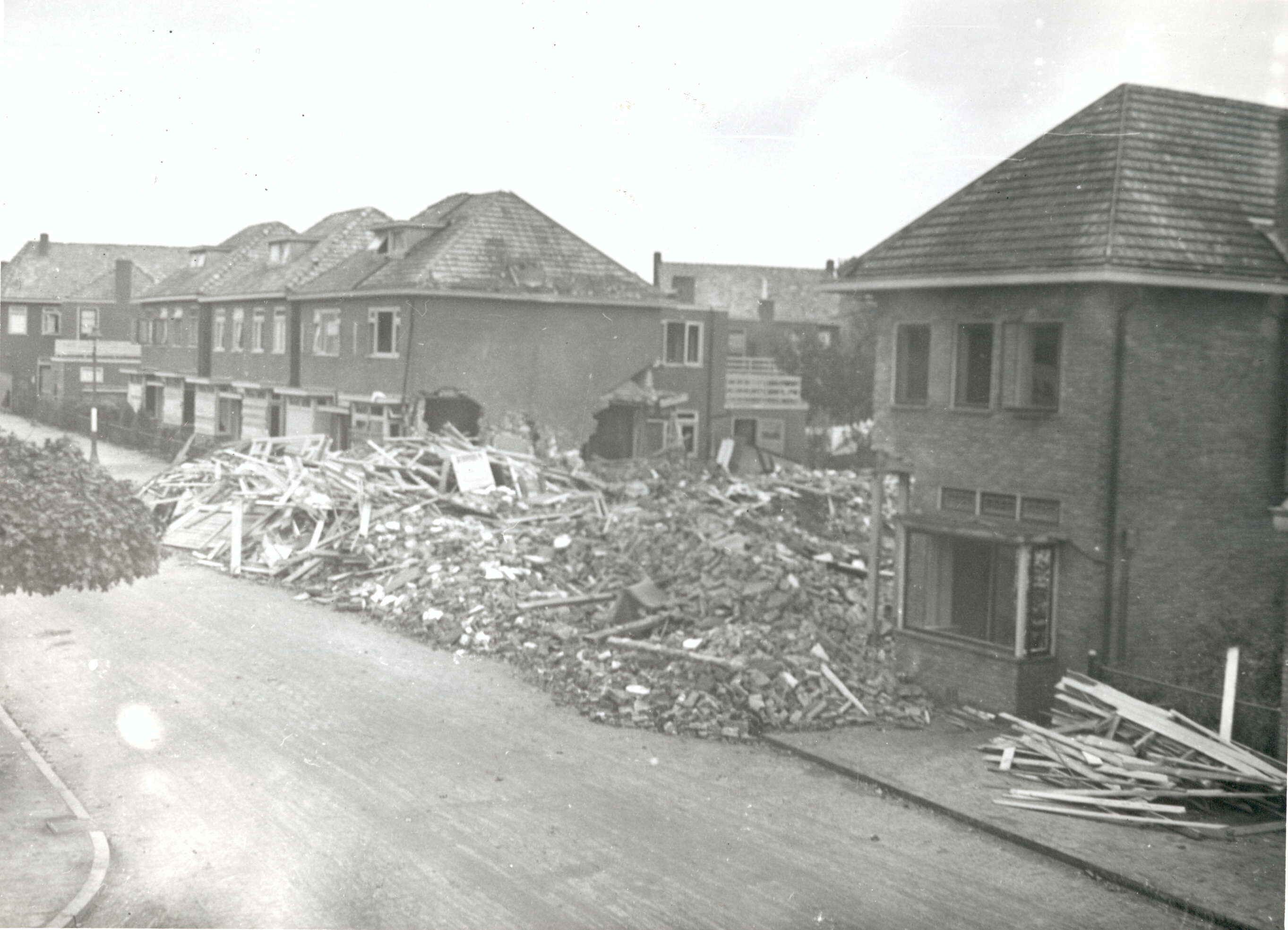 De derde foto van Veteraan is de verwoesting van de woningen aan de Javastraat door het bombardement van