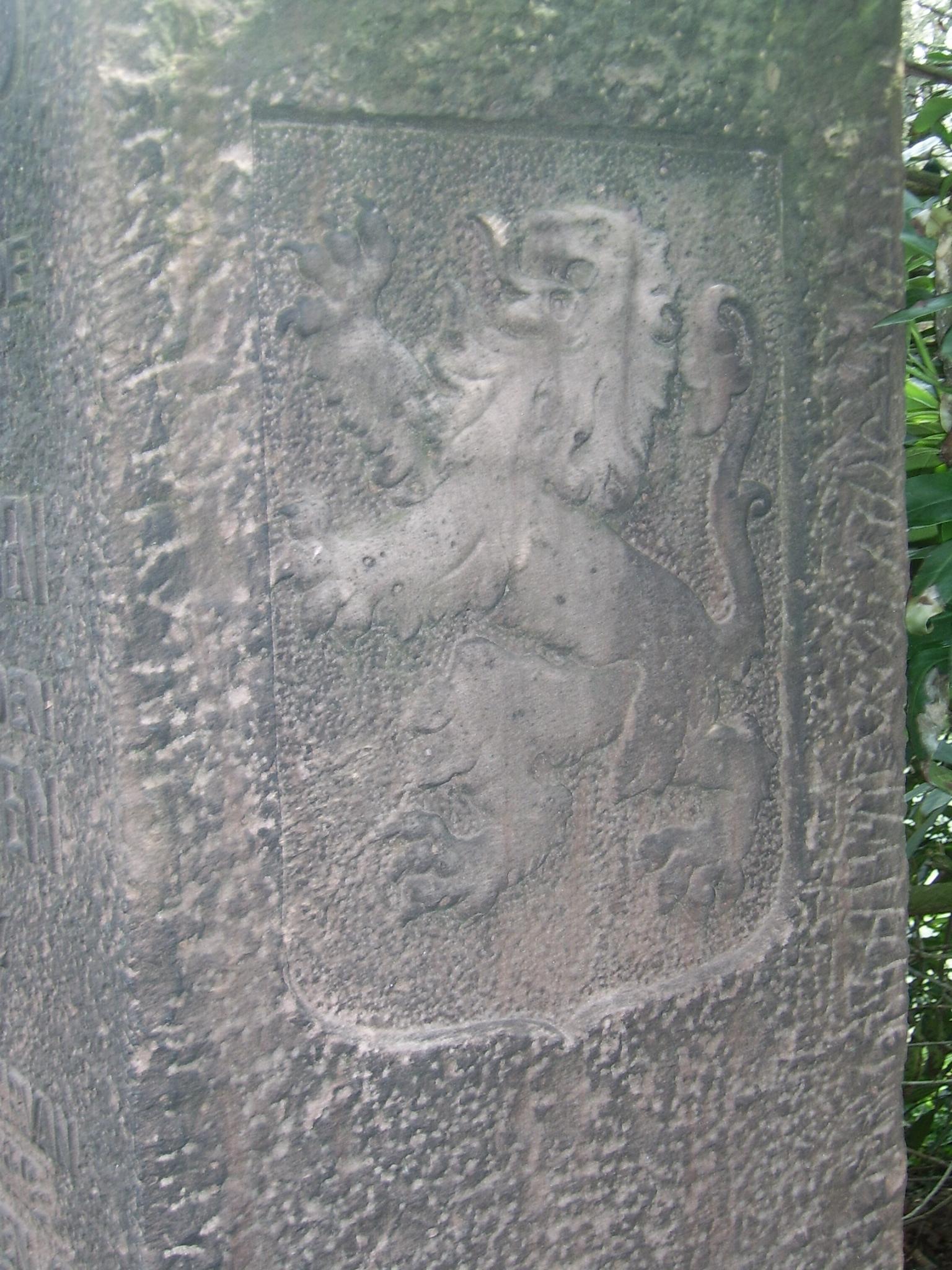 Aan de achterzijde staat vermeld: Vliegt de blauwvoet, storm op zee. De tekst; vliegt de blauwvoet, storm op zee, komt uit het boek; Kerels van Vlaanderen, van Hendrik Conscience en werd de strijdkreet van een Vlaamse beweging die zich beijverde voor het gebruik van de Nederlandse taal. Nog ieder jaar laat de Belgische ambassadeur in Nederland het Enschedese monumentje controlleren op de staat van onderhoud.