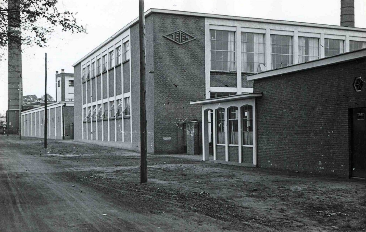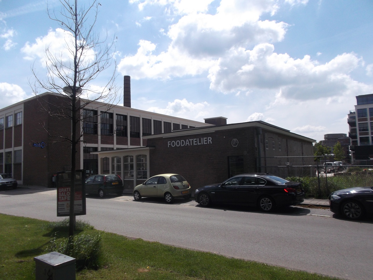 Vroeger Hulsmaatweg fabriekscomplex Tetem april 1949 en nu Hulsmaatstraat Artezgebouw en Foodatelier 31 mei 2013