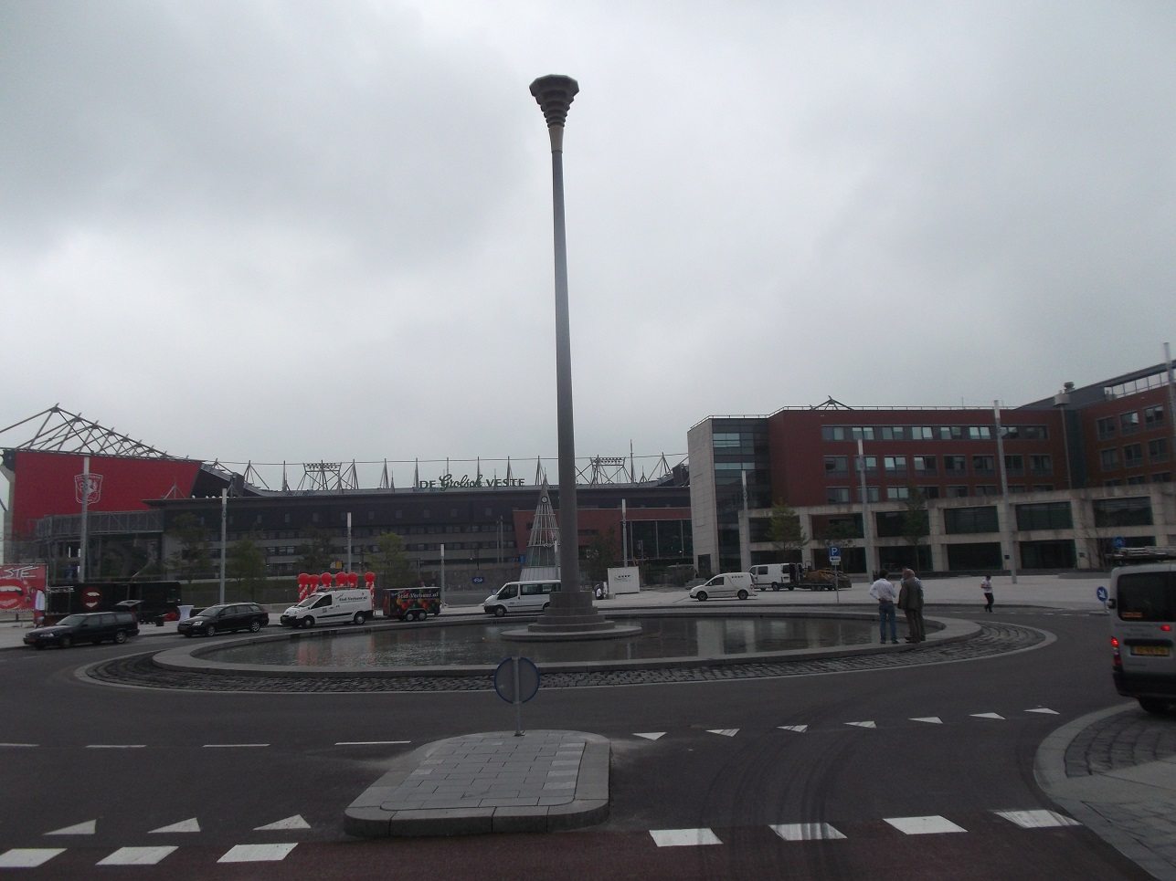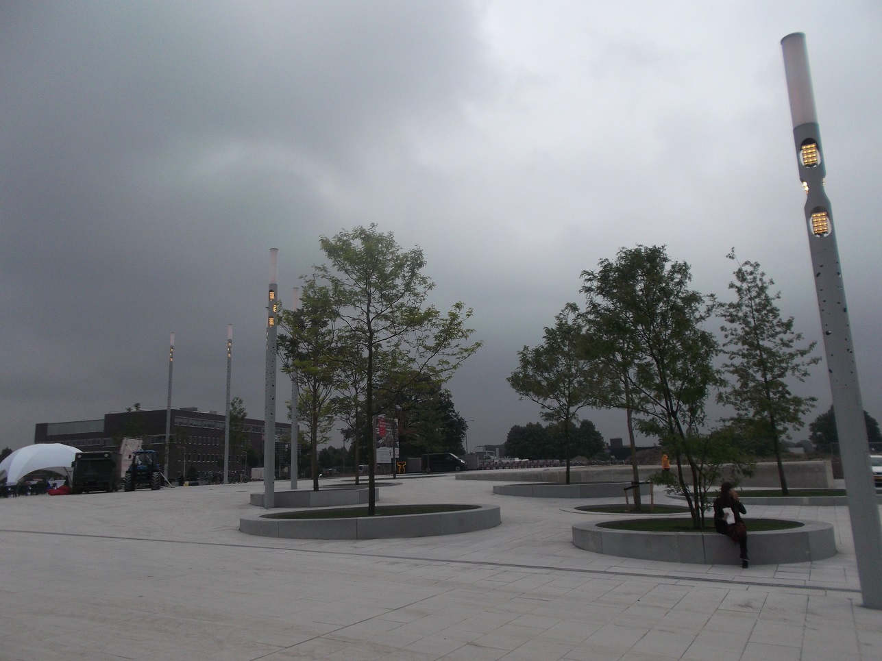 Ben er langsgereden. Het is een mooi en open plein. Je zou hier best een markt kunnen organiseren zoals het van Heekplein. Ditto kunstzinnige verlichting en fonteinen. Maar de uistraling is toch anders dan van Heek omdat hier mooiere architectuur omheen staat, en een stat/dion natuurlijk.