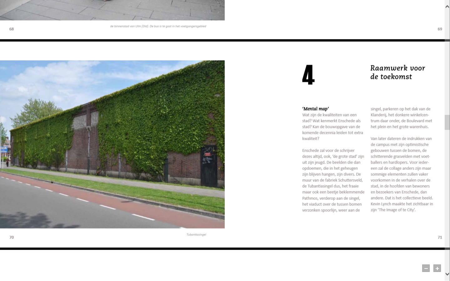 De muur van Schuttersveld wordt ook genoemd in het boekje van stadsstedenbouwer Ton Schaap: Enschede 2030 ruimtelijke uitwerking stedelijke koers, uitgave 2013. Voor het downloaden van dit boekje in PDF bestand zie: http://www.enschede.nl/zoeken/?q=aan+de ... N&filter=0