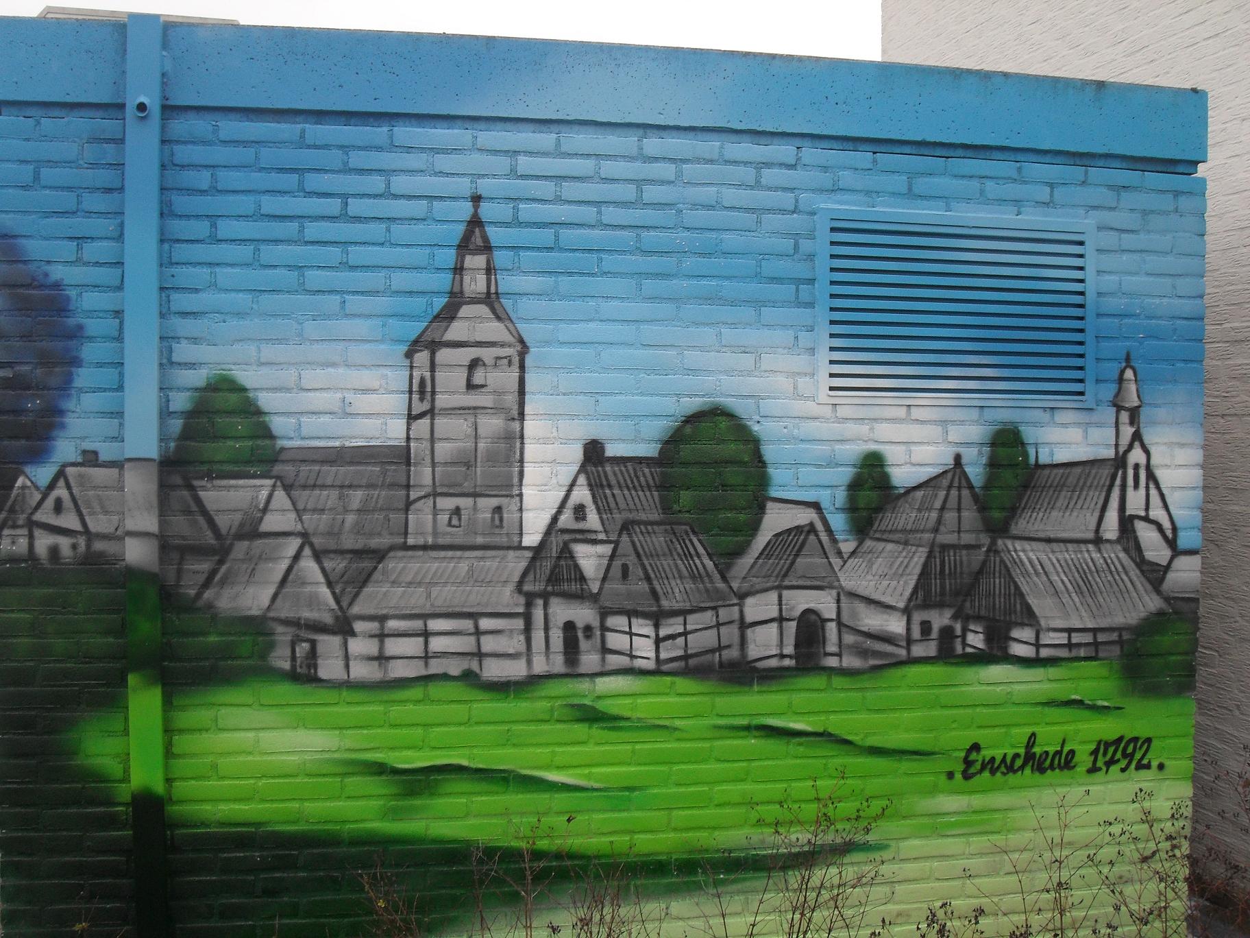 Wandbeschildering gemaakt aan de zijkant van de brug,