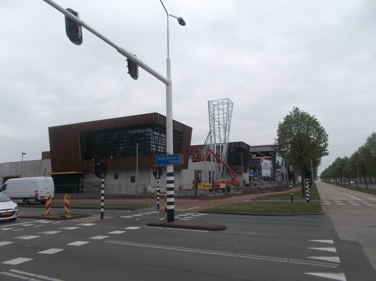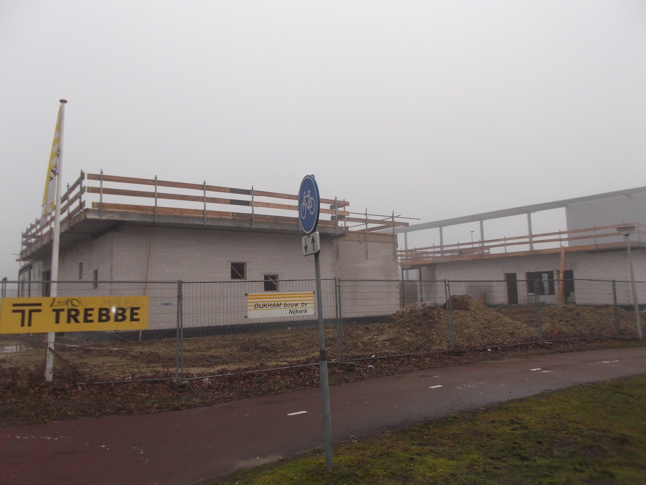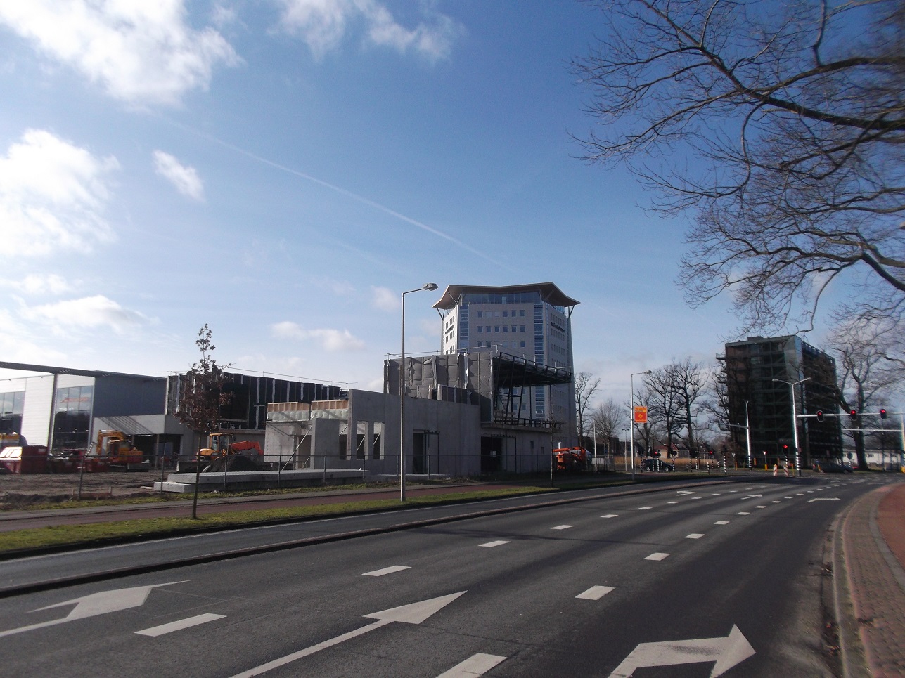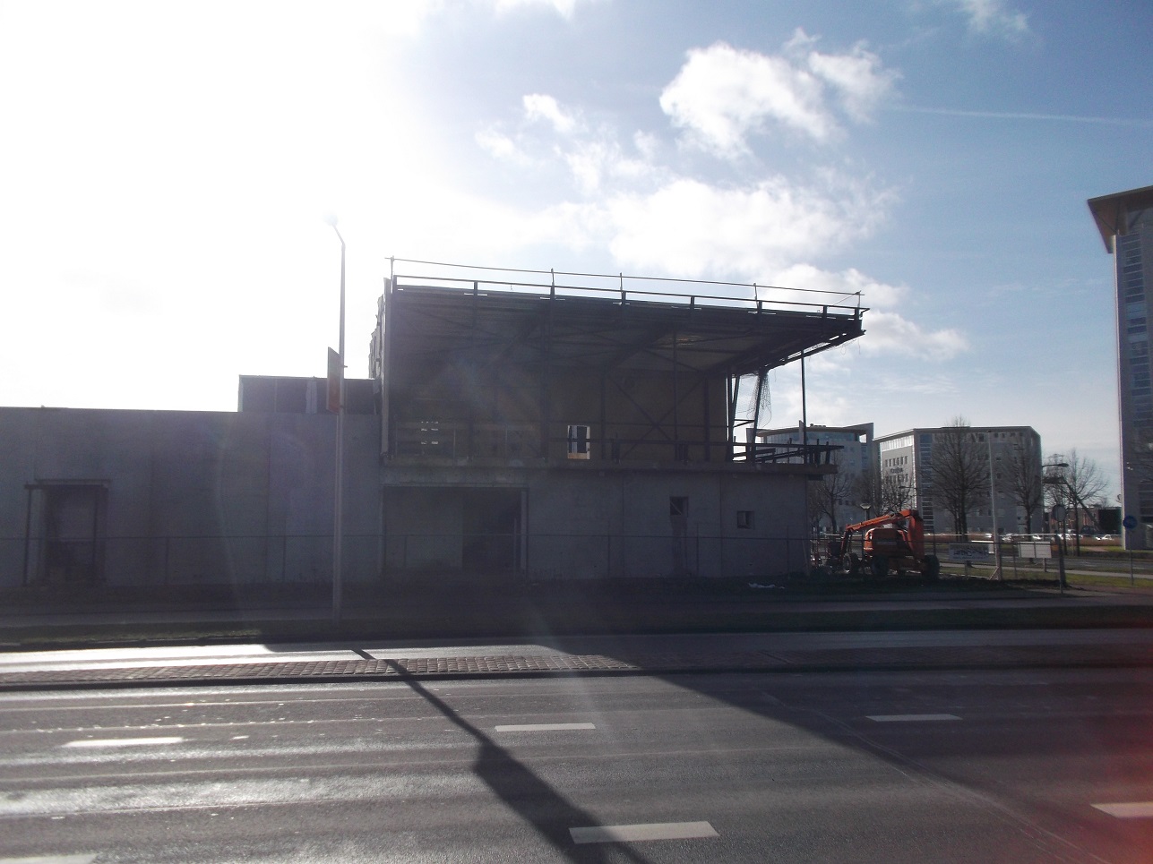Goed nieuws! De bouw is ondertussen weer hervat. Van het eerste gebouw staat een stalen skelet en is er begonnen met het aanbrengen van isolatie. Ik vermoed dat de reden ook was, dat het stil stond omdat ze moesten wachten op staal. Heb helaas geen foto's
