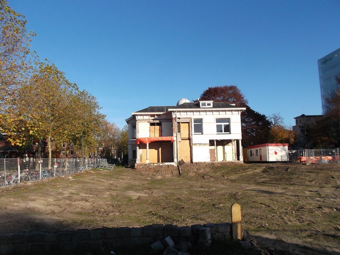 Op onderstaande foto's van de sloop van het natuurmuseum aan De Ruyterlaan hoek M.H. Tromplaan is nog mooi te zien dat op de villa een koepel stond van de sterrenwacht.