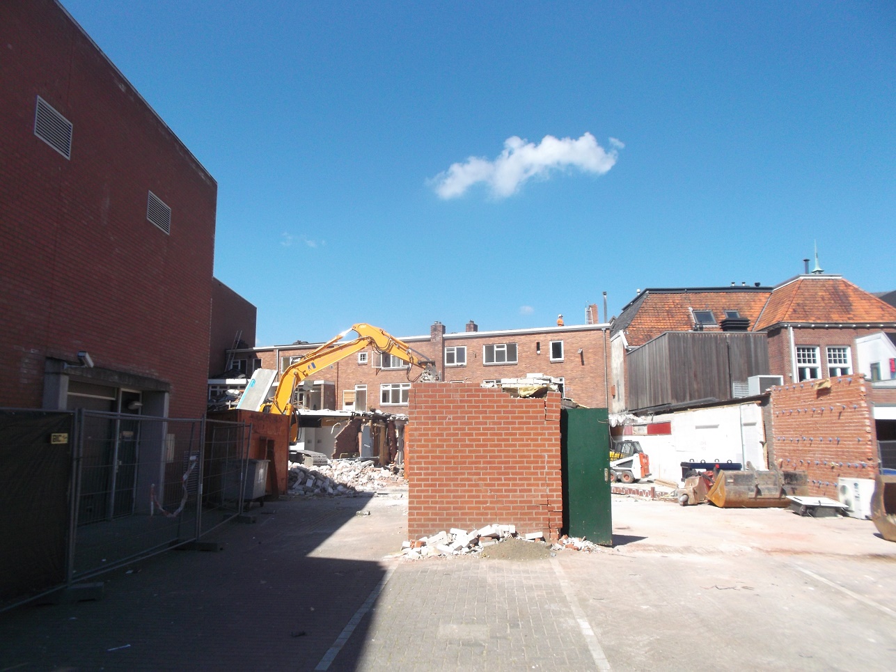 Vanaf de voorkant is nog niet veel te zien, maar vanuit de achterkant was de sloop op afgelopen vrijdag in volle gang.