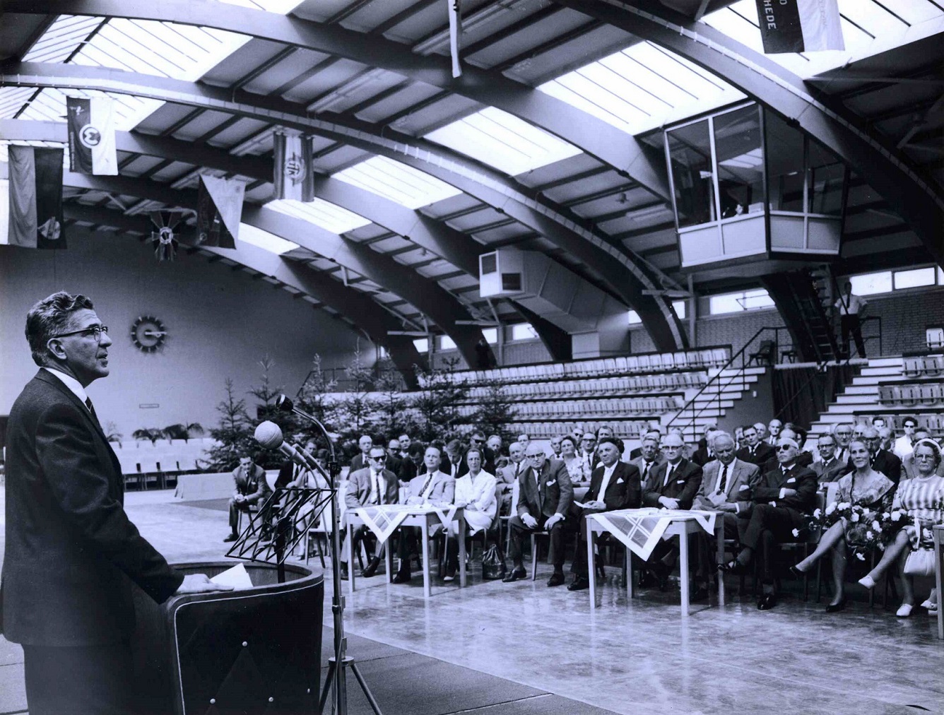 Hierbij een foto van de opening van de sporthal Het Diekman aan de J.J. van Deinselaan in juni 1964 met een toespraak van burgemeester W. Thomassen
