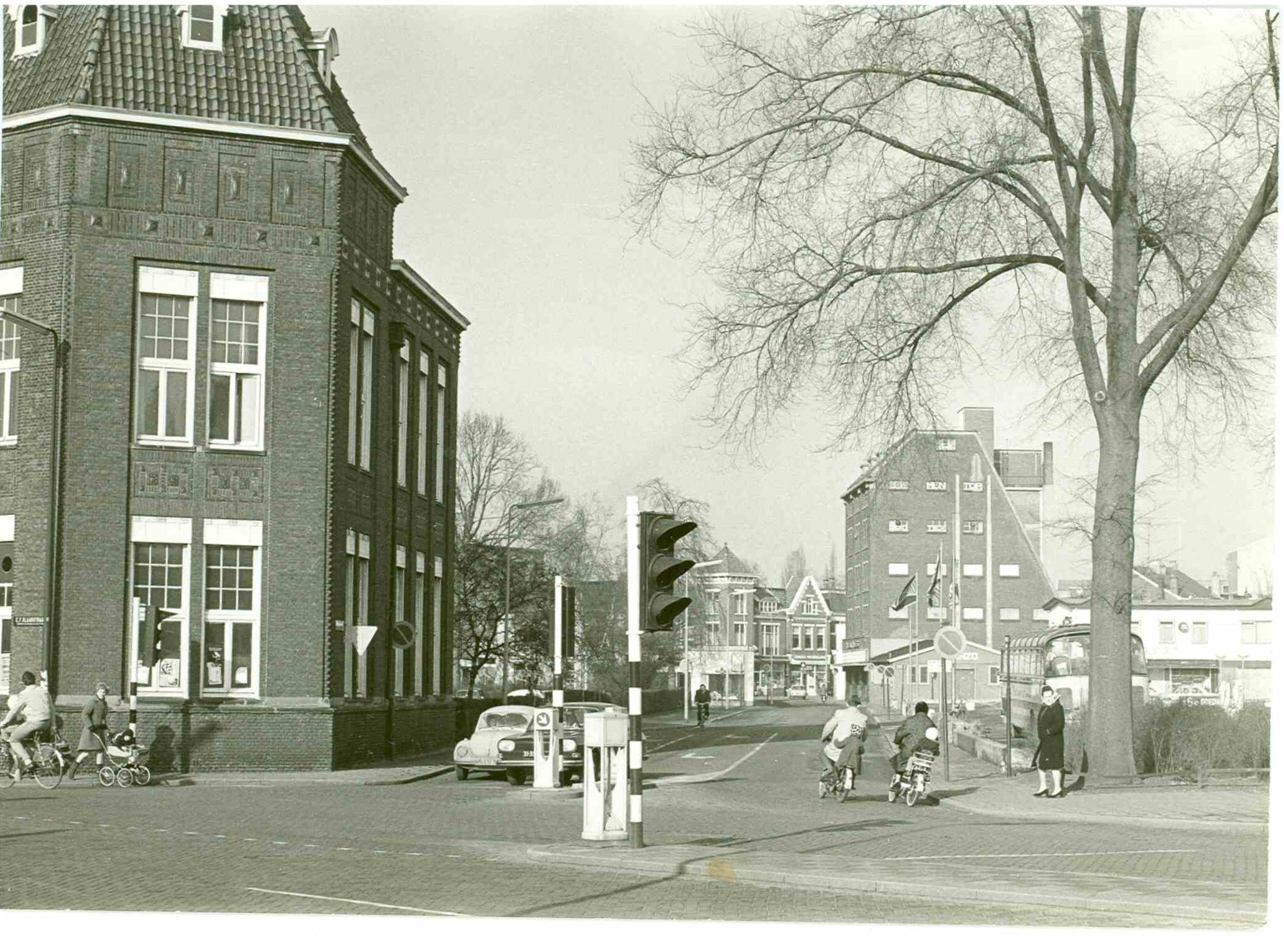 Langs de CF Klaarstraat zat de Gemeentelijke HBS, later het Lyceum. Om de hoek aan de Haaksbergerstraat zat het politiebureau met zijn karakteristieke torentje. Op de genoemde kruising zat de sportzaak van Van ’t Hoen, die zit nu aan de Kuipersdijk (of heet het daar al anders?) vlak bij V&D.