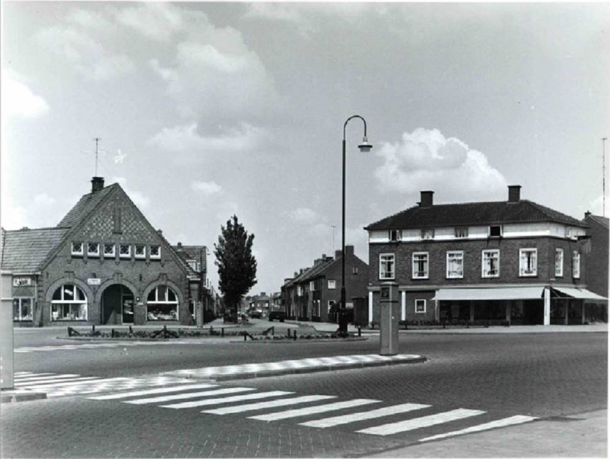 Dennenweg hoek Zweringweg vroeger (sigarenwinkel Nieuwe Weme) en nu (woningen)