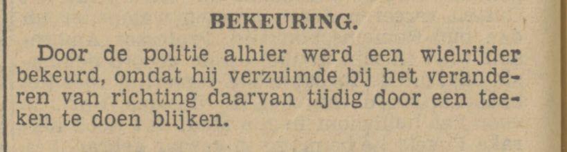 Vroeger werd je nog bekeurd als je de hand niet uitstak bij het van richting veranderen op de fiets en het kwam ook nog in de krant. Twentsch nieuws ENSCHEDE. Twentsch dagblad Tubantia en Enschedesche courant. Enschede, 05-12-1940
