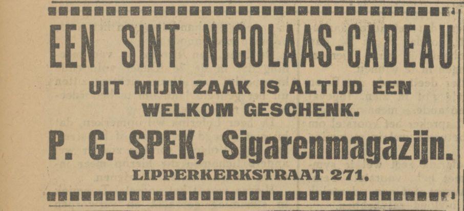 lucifersdoosje Lipperkerkstraat 271 sigarenmagazijn Spek. Van het pand heb ik geen foto kunnen vinden.