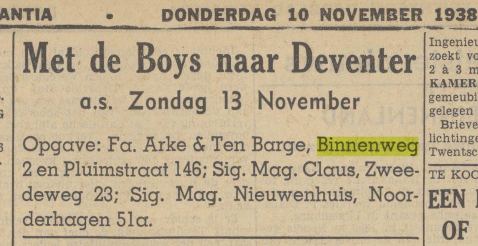 De Binnenweg is inmiddels ook een verdwenen straatnaam en deze liep van de Deurningerstraat n.-waarts tot de Lasonderstraat-hoek De Genestetstraat.