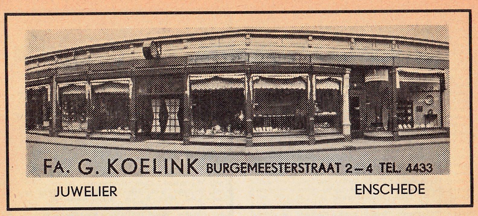 Burgemeesterstraat 4 Fa. G. Koelink advertentie Tubantia 21-11-1941.