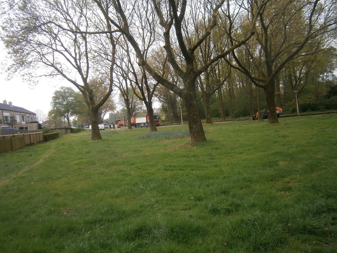 Vandaag is men begonnen met de afaltering van de fietsstraat in de Ferdinand Bolstraat. Gelukkig zijn de bomen blijven staan.