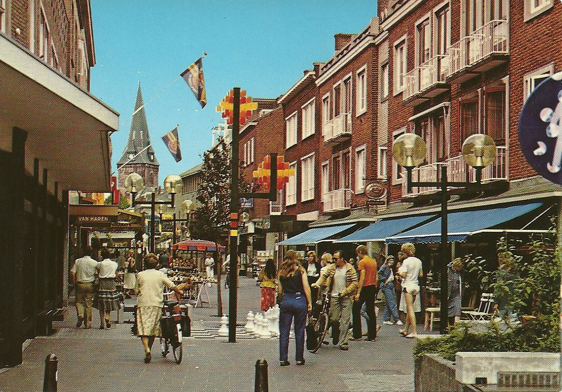 Raadhuisstraat 1980 Hoek met H.J. van Heekplein, Grote Kerk op de achtergrond.jpg