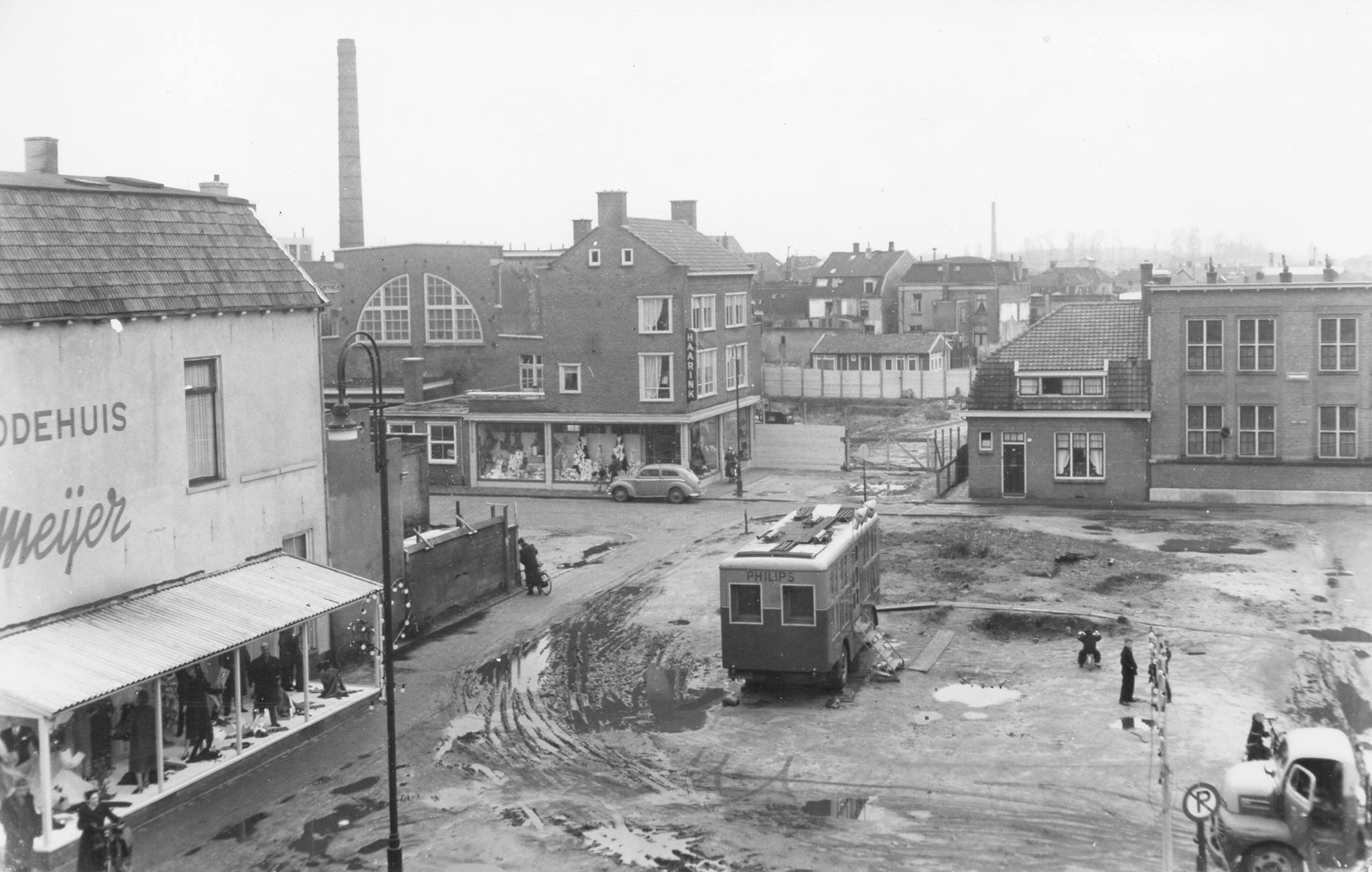 Ik heb er op faceboek al een heel verhaal bijgeschreven:Het pand in het midden is het eerste pand dat aan de Raadhuisstraat werd gezet. Een stoffenwinkel. Haarink? geloof het wel. Op de hoek Achter t'Hofje. Van de verdere raadhuisstraat is nog niet zo veel te zien. Dat moest allemaal nog komen. Wel leuk om te ontdekken dat Meijer Mode daar begonnen is.Hun nieuwbouwpand aan de Marktstraat was kennelijk nog niet klaar. Op de achtergrond kijk je tegen de achterkant van huizen aan de Willemstraat aan. De panden aan de Zuiderhagen daarvoor zijn al weg. Die 2 panden rechts is wat nu de Windbrugstraat is. Het woonhuis staat op de plek waar later het RaedhuysHotel kwam. Het pand helemaal rechts kan het electra verdeelstation zijn. Weet ik niet zeker. Datering? 1e helft jaren 50.