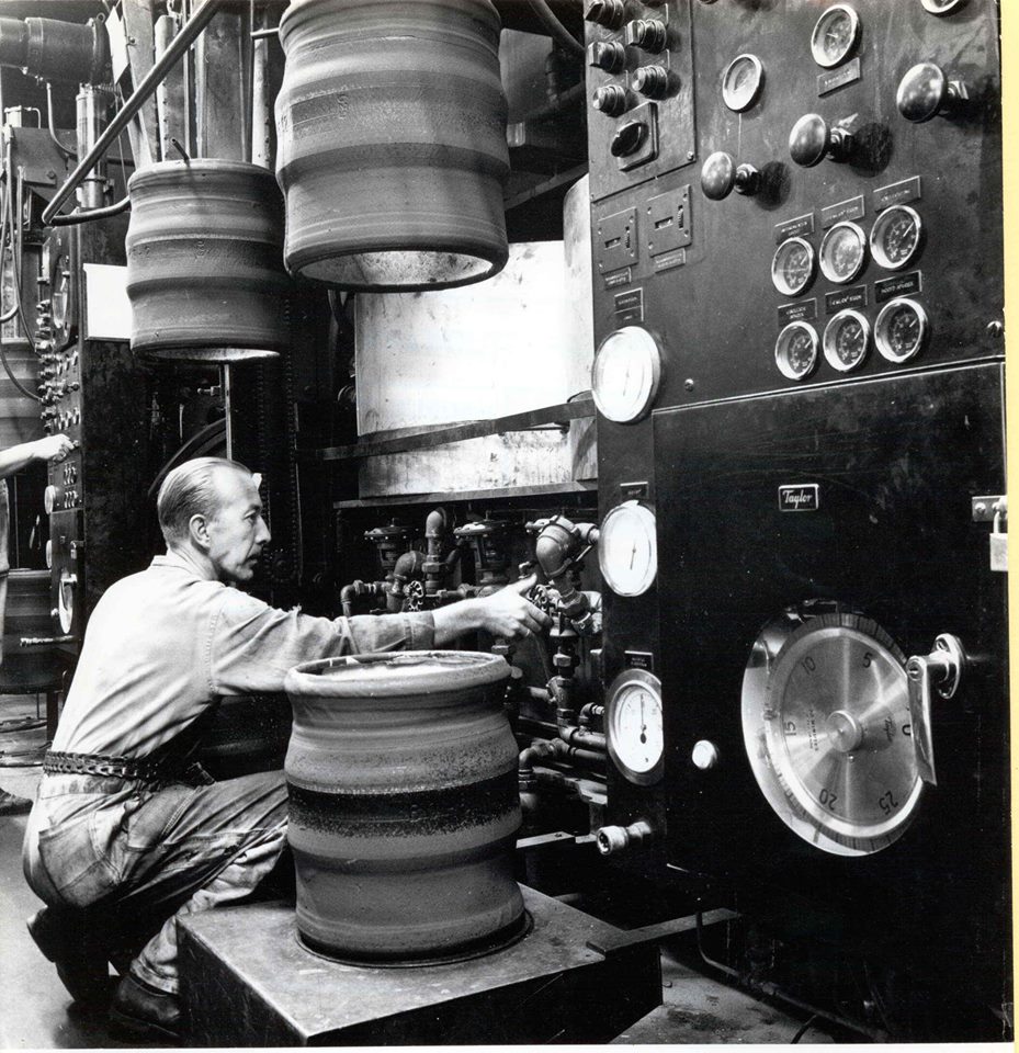 Binnenhaven Produktie van autobanden bij Autobandenfabriek fa. Vredestein 1950 (8).jpg
