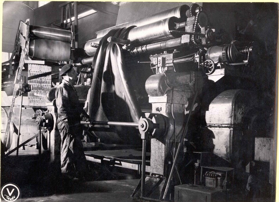 Binnenhaven Produktie van autobanden bij Autobandenfabriek fa. Vredestein. Foto's van 1950.