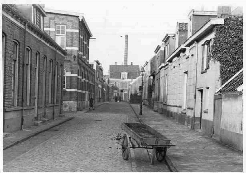 Mooienhofstraat richting Willemstraat met links de Nassaustraat en de hoedenfabriek . de Krim. 1944.jpg