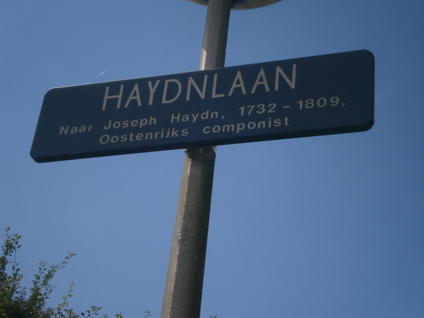 Naar Joseph Haydn, geboren 31 maart 1732 te Rohrau, overleden 31 mei 1809 te Wenen. Oostenrijks componist wiens oeuvre zowel kerk- als wereldlijke muziek in een groot aantal genres omvat. Hij componeerde o.m. de oratoria "Die Schöpfung" en Die Jahreszeiten een Stabat Mater etc. en hij kan als pionier van de strijkkwartetten worden beschouwd (12 december 1960). bron: http://straatnamen.enschede.nl/straten/00392/?char=H