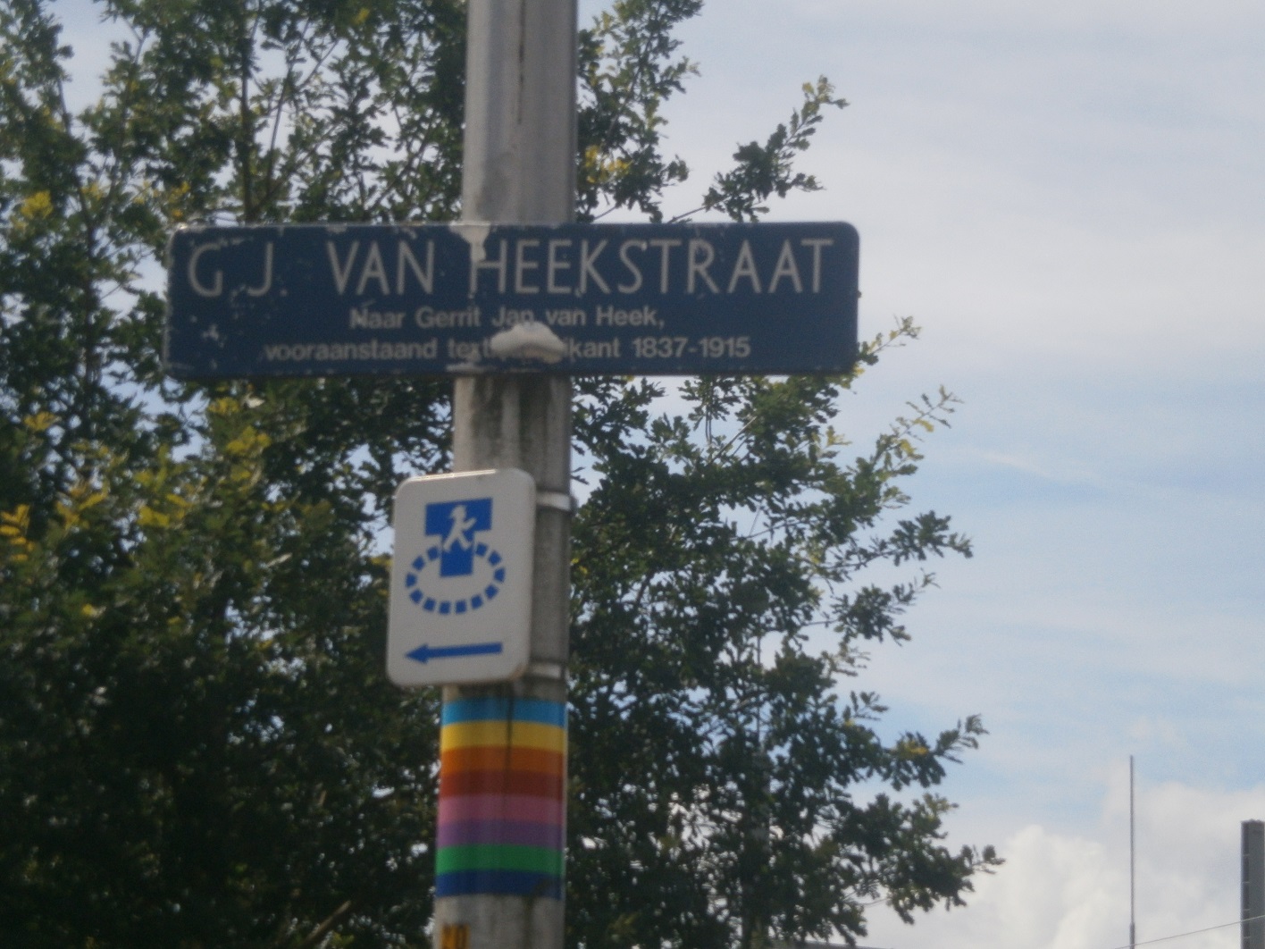 Naar Gerrit Jan van Heek, geboren 9 november 1837 te Enschede, overleden 28 december 1915 aldaar. Zeer vooraanstaand textielindustrieel en als zodanig in 1859 mede-oprichter van de N.V. Van Heek & Co., richtte in 1888 de N.V. Boekelose Stoomblekerij op en stichtte in 1897 de Fa. G.J. van Heek & Zonen "Rigtersbleek". Hij was lid van de Prov. Staten van Overijssel, lid van de Eerste Kamer der Staten Generaal en plv. voorz. van de Kamer van Koophandel en Fabrieken, alhier (4 maart 1929 voormalig Lonneker; omschrijving gewijzigd 29 mei 1936 en 17 augustus 1953). De bij besluit van 4 maart 1929 van de voormalige gemeente Lonneker vastgestelde omschrijving, gewijzigd 29 mei 1936, luidde: "van Goolkatenweg w.-waarts tot Olieslagweg". Tevens is bij besluit van 29 mei 1936 voor het gedeelte van de Goolkatenweg tot de Alleeweg de vastgestelde naam "Twekkelerweg" gewijzigd in "G.J. van Heekstraat". bron: http://straatnamen.enschede.nl/straten/00397/?char=G