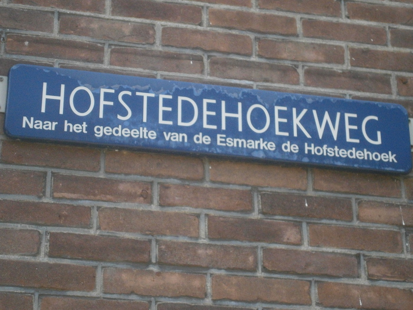 Naar het hier gelegen gedeelte van de oude Esmarke, genaanmd "De Hofstedehoek" (29 mei 1936, gewijzigd 8 februari 1960). bron: http://straatnamen.enschede.nl/straten/00443/?char=H