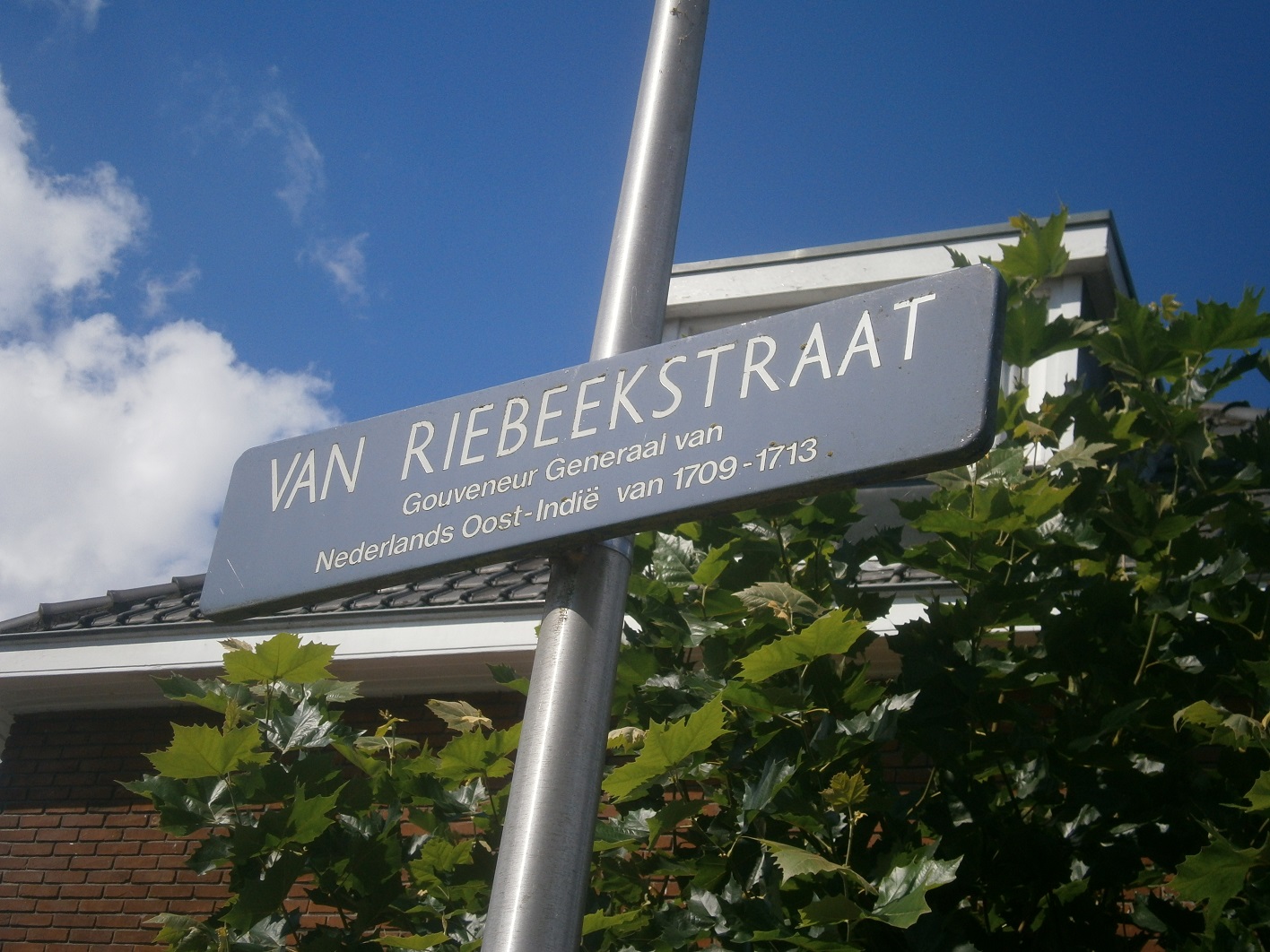 Naar Abraham van Riebeek. Ned. koloniaal bewindsman, geboren, geboren 18 oktober 1653 te Kaap de Goede Hoop, overleden 17 november 1713 te Batavia. Was van 1709-1713 gouverneur-generaal van het voormalige Ned. Oost-Indië (2 mei 1938) gewijzigd 16 maart 1959). De bij raadsbesluit van voormalig Lonneker d.d. 23 november 1933 vastgestelde naam "Jan van Riebeekstraat" is bij raadsbesluit van 2 mei 1938 gewijzigd in 't Van Riebeekstraat". Door de wijziging op 16 maart 1959 van de straatnaam "Veenstraat" in Heutinkstraat" is de omschrijving gewijzigd. bron: http://straatnamen.enschede.nl/straten/00827/?char=V
