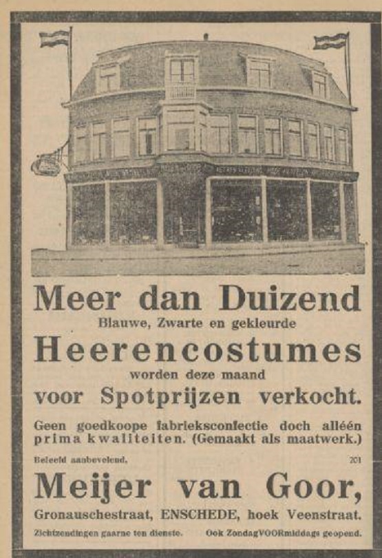 Gronausestraat hoek Veenstraat Meijer van Goor advertentie Tubantia 21-2-1930.
