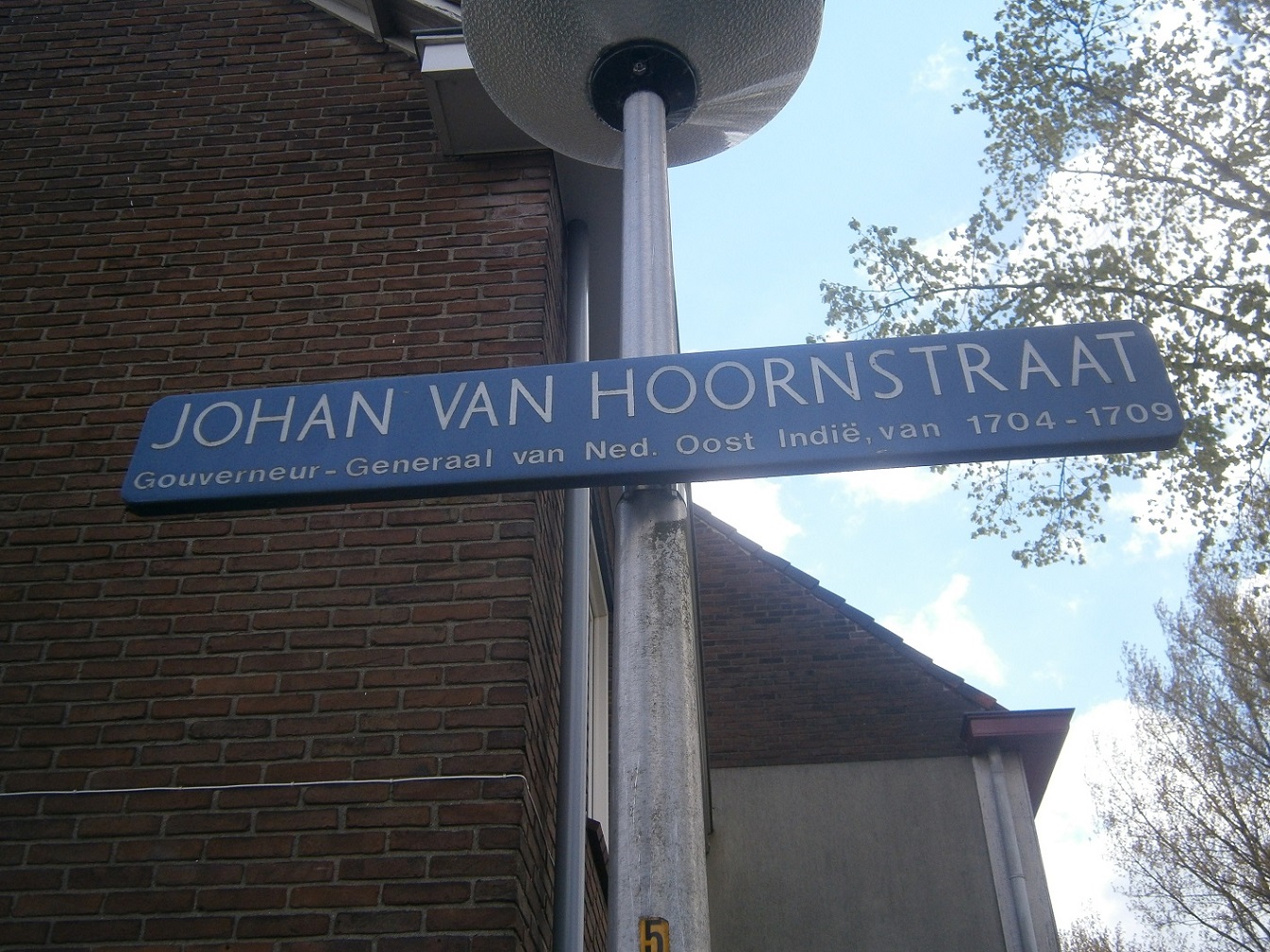 Naar Johan van Hoorn, Ned. staatsman, geboren 16 november 1653 te Amsterdam, overleden 21 februari 1711. Was als ambtenaar in dienst van de Ned. Oost-indische Compagnie en van 1704-1709 gouverneur-Generaal van Ned. Oost-indië (12 juli 1954). bron: http://straatnamen.enschede.nl/straten/00462/?char=J