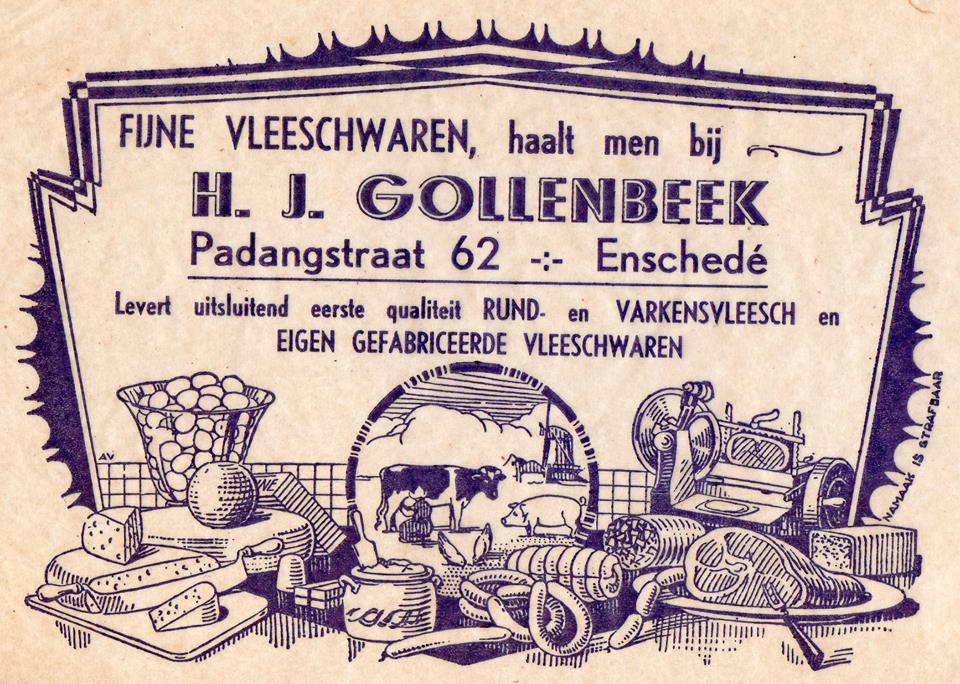 Padangstraat 62 H.J. Gollenbeek en Zn Fijne vleeswaren zakje.