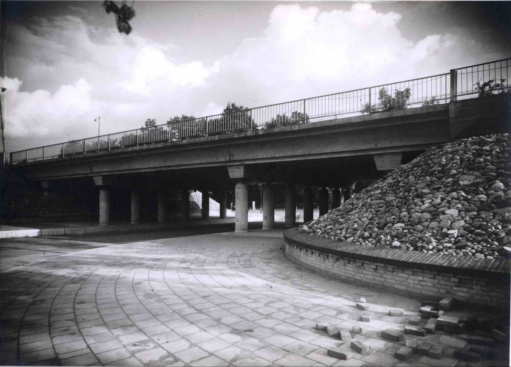 Naar de afgebroken windkorenmolen, die hier heeft gestaan (31 oktober 1977). Door de aanleg van de Rijksweg 35 is de Oude Beckumerweg in twee delen gesplitst; het ene gedeelte is benaamd als "Molenveld" en het andere gedeelte is bij de Windmolenweg gevoegd. bron: http://straatnamen.enschede.nl/straten/00690/?char=M