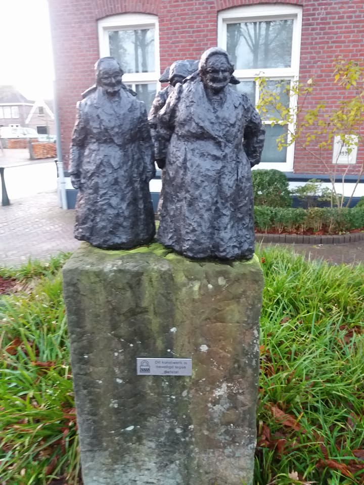 Met dit beeld worden de boerenvrouwen gesymboliseerd die vanaf de stromarkt al kletsend en kwetterend naar het centrum van de stad liepen om daar hun produkten op de markt aan te bieden. zie: http://vanderkrogt.net/standbeelden/obj ... ord=OV06an
