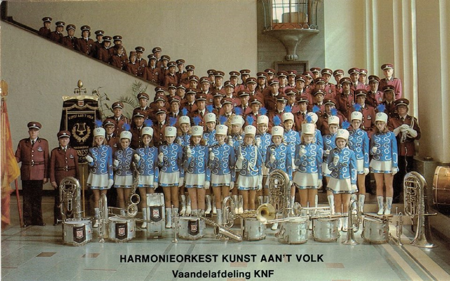 Afbeeldingen van muziekkorps Kunst aan 't Volk waarop ook het stadswapen van Enschede is te zien.