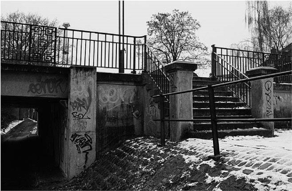 De voetgangerstunnel onder de Edo Bergsmabrug in de Oosterstraat.
