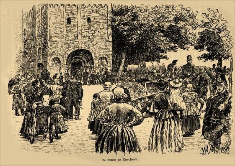 Oldenzaalsestraat Wilhelminastraat 1890 Tekening van de fabrieken en magazijnen van Tattersall en Holdsworth.