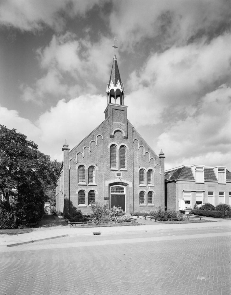Het lijkt mij wel een gereformeerde kerk aan de vorm te zien. Hierbij voorbeelden van kerkgebouwen in Arum (Friesland) en Ten Boer (Groningen). Misschien weet Hendrik hier iets meer over?