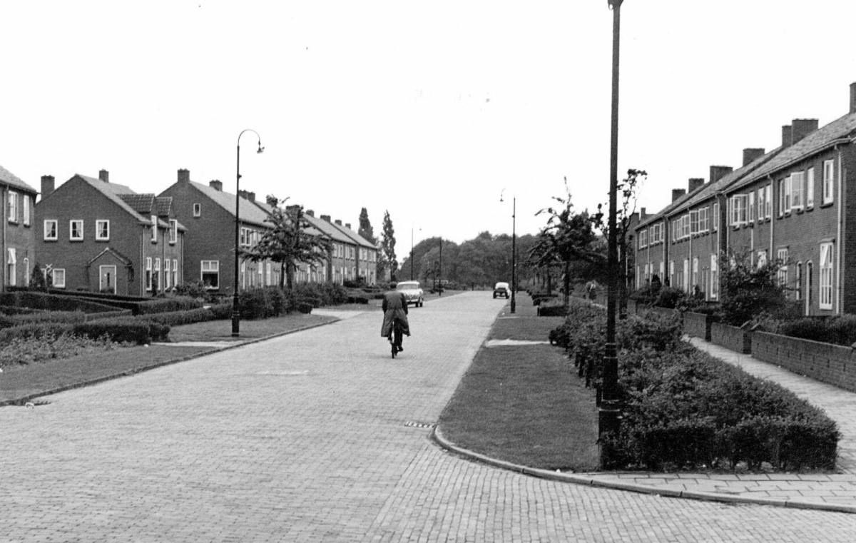 Dit is de Malangstraat genomen vanaf de hoek Meester Cornelisstraat , met op de achtergrond de plek waar later de sportvelden zijn aangelegd.