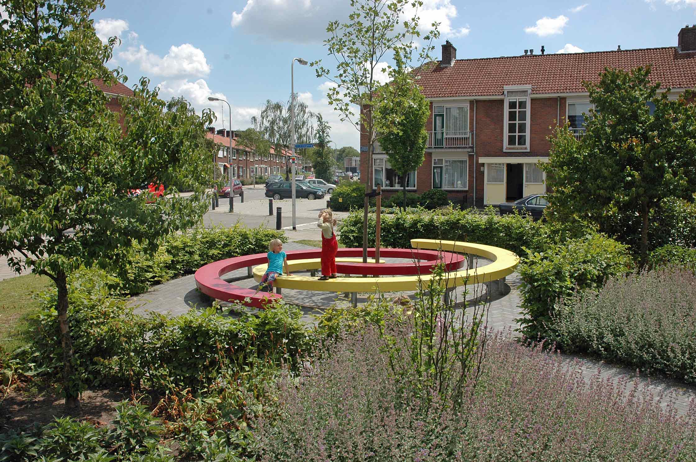 Olieslagweg Plein basisschool de Noorderkroon kunstobject Kosmosbank van Jeroen Hoogstraten.