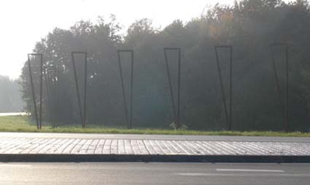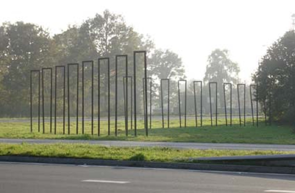 Hallenweg, thv de Achterhorst en Pinetumpad op de Universiteit Twente kunstwerk Kolommen van Evert Strobos.