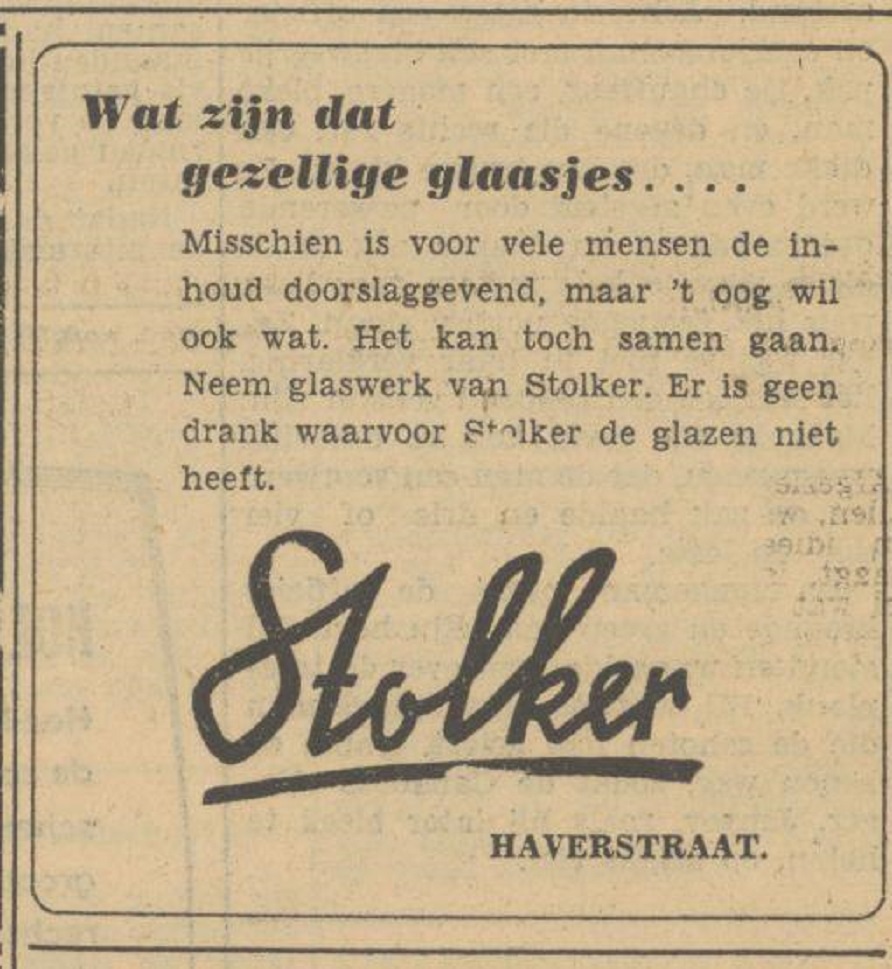 Haverstraat Stolker advertentie Tubantia 3-10-1951.