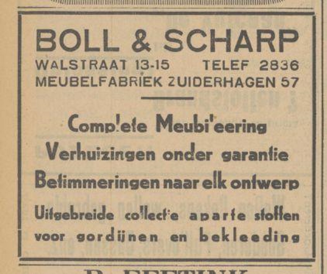 Zuiderhagen 57 Meubelfabriek Boll & Scharp advertentie Tubantia 13-11-1934.