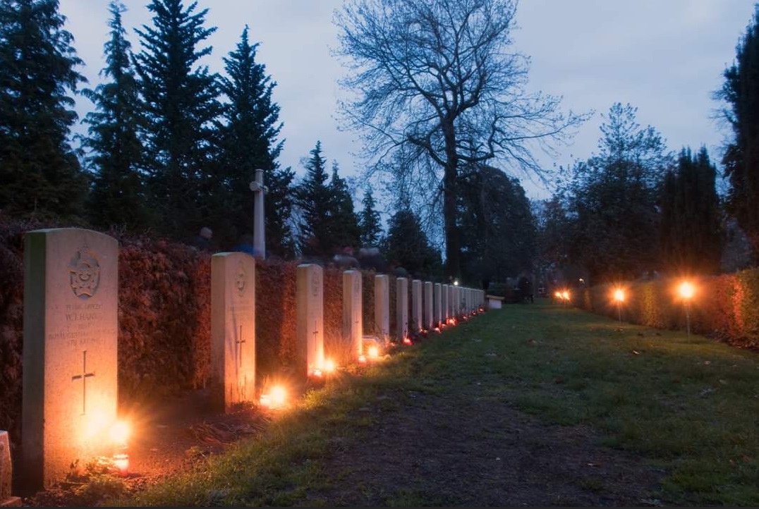 Oorlogsgraven in het licht gezet in Enschede om soldaten te eren