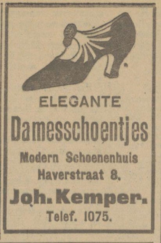 Haverstraat 8 Schoenenhuis Joh. Kemper advertentie Tubantia 11-3-1925.