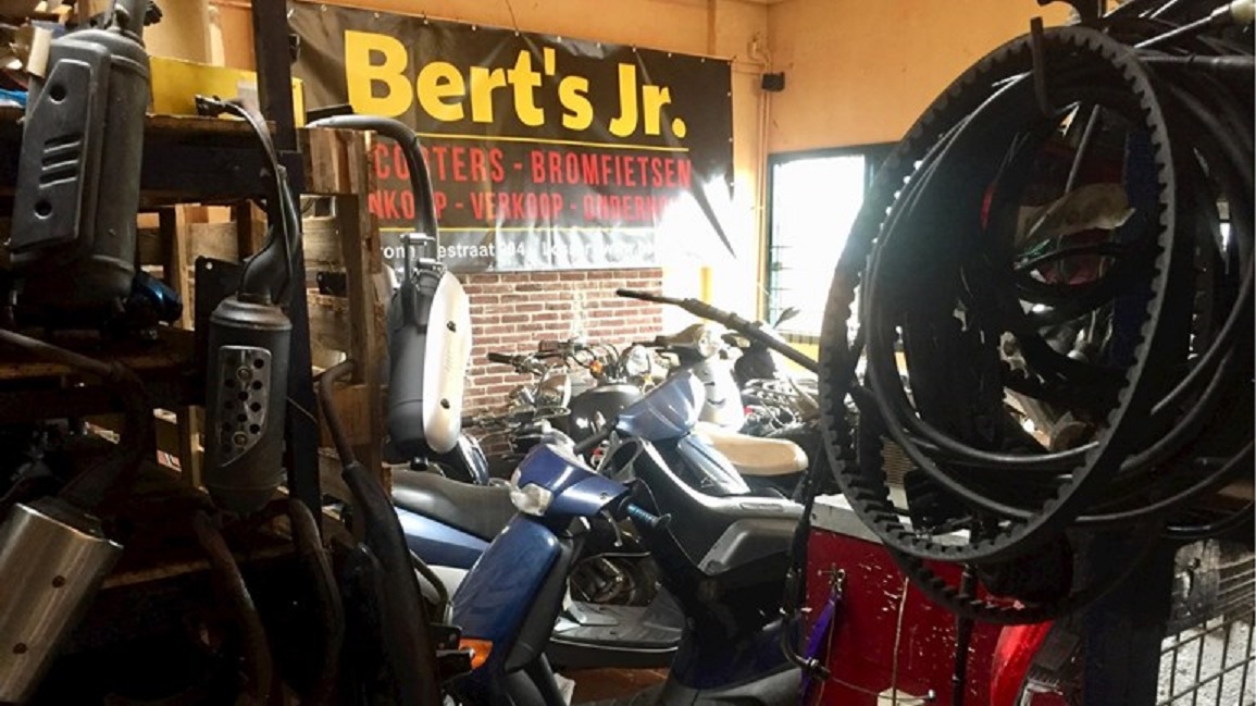 Vijftig jaar sleutelen aan brommers en scooters en handelen in de benodigde materialen. Brommer Bertje is een begrip in Enschede.