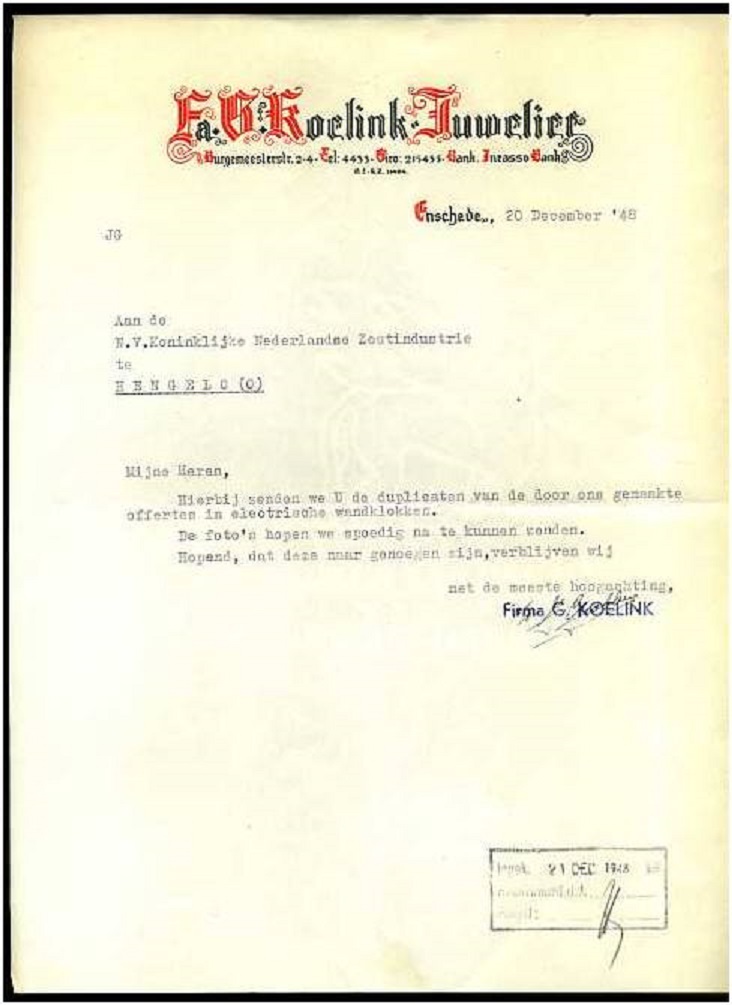 Burgemeesterstraat 2-4 Fa. G. Koelink juwelier. briefhoofd